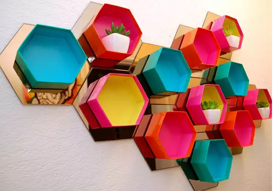 2、用明艷的色彩裝飾你的墻。禮品包裝盒廠家說色彩鮮明的包裝盒是比較受歡迎的,所以我們身邊并不缺少這樣的盒子,所以,如果你剛好有,那就把它釘在墻上吧,它會讓你家的墻壁變得不再單調(diào),在上面放些盆栽做裝飾,一面藝術(shù)般的墻就出現(xiàn)了。