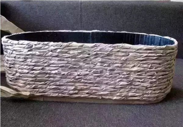 步驟4.逐圈點(diǎn)上膠水后粘在上面做好的長橢圓形盆子外面,這樣看起來這個花盆是不是變得有藝術(shù)感了許多呢?