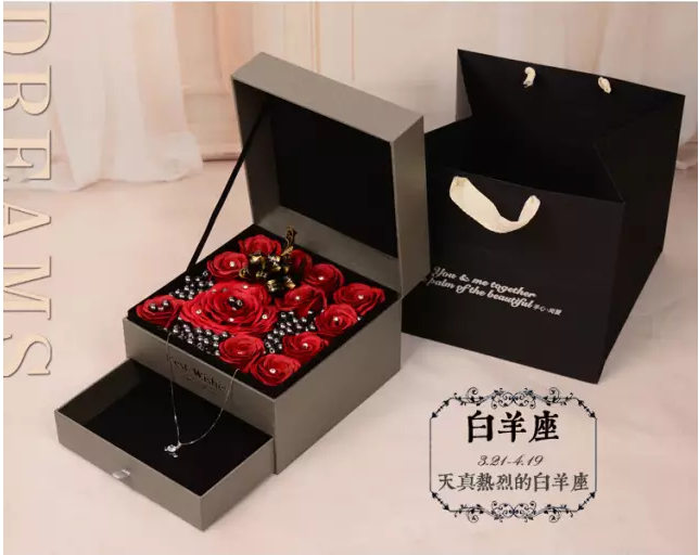 白羊座是天生果敢者,他們永遠(yuǎn)生機(jī)勃勃、激情盎然,他們熱情坦率、慷慨真誠、堅(jiān)強(qiáng)勇敢,在生活中是個(gè)不拘小節(jié)之人,而他們的項(xiàng)鏈禮盒當(dāng)然要用最有熱情的火紅色玫瑰來點(diǎn)綴!