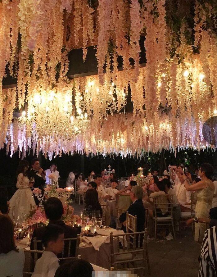 婚禮在寶格麗酒店著名水上婚禮地點舉行,婚禮儀式上,趙薇出席,與范冰冰“還珠幫”合體。此外,胡歌、徐若瑄、周迅、吳奇隆、劉詩詩、劉濤等人現(xiàn)身?;槎Y儀式以撥動愛的心弦為主題,采用林心如最愛的粉絲布置,最引人注意的是舞臺中心的雙層心形花架。 晚宴內(nèi)場曝光!旁邊就是懸崖,能聽到海浪的聲音~布置靈感來自節(jié)日焰火,用了4種不同顏色、50000支的紫藤花串,微妙的漸變由粉到白,中間點綴50盞水晶,好似云霧中綻放的煙火~敲有心思!