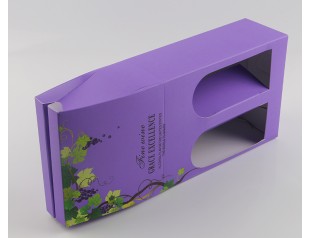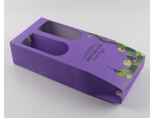 雙支酒包裝盒,采用大氣的葡萄圖案,高貴的紫色,凸顯酒的品質(zhì)。在駿業(yè)包裝廠定做的可折疊酒盒,開(kāi)窗的設(shè)計(jì),讓客戶(hù)一眼就可目睹高貴的紅酒。此紅酒禮品盒內(nèi)采用兩格規(guī)定的形式,保證了產(chǎn)品的安全。