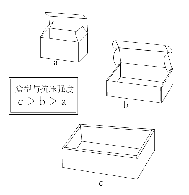 不同的盒型抗壓強(qiáng)度不同,我們常常根據(jù)產(chǎn)品的重量、及盒子的功能(物流包裝、銷售包裝)來設(shè)計(jì)不同的盒型滿足客戶對抗壓強(qiáng)度的需求。