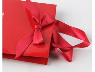 紅色在中國算是最受歡迎的顏色了,代表著喜慶、大氣,有留意的話會發(fā)現(xiàn),很多中國的珠寶商都喜歡用紅色來做珠寶的包裝、陪襯,紅色的珠寶首飾紙袋當然也少不了。這款禮品紙袋使用雙銅紙為主要材料,袋子表面logo使用精美的燙金工藝,凸顯品牌質(zhì)感;拎手選用了絲帶,這個袋子的手拎特別有意思,不是跟其他的紙袋那樣打結或者這膠封,而是采用在外面打蝴蝶結的方式,不僅固定住了拎手,而且還裝飾了紙袋,一舉兩得。袋身由紅色專色印刷而成,做工精細,印刷精美,尺寸可按需求定制。