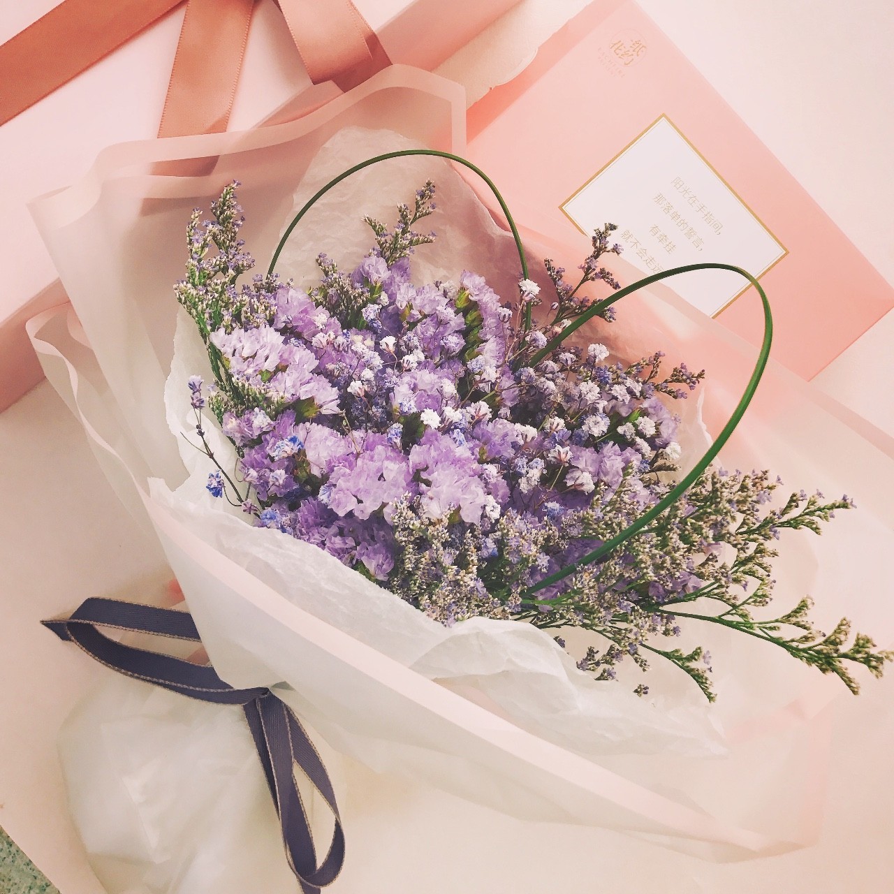 如上圖,小編的這束花的特別之處在于在束花里加了鋼絲草,做成了愛心的造型。在這個(gè)表達(dá)愛意的節(jié)日里,當(dāng)然要無(wú)處不在的比心心以表誠(chéng)意啊~
