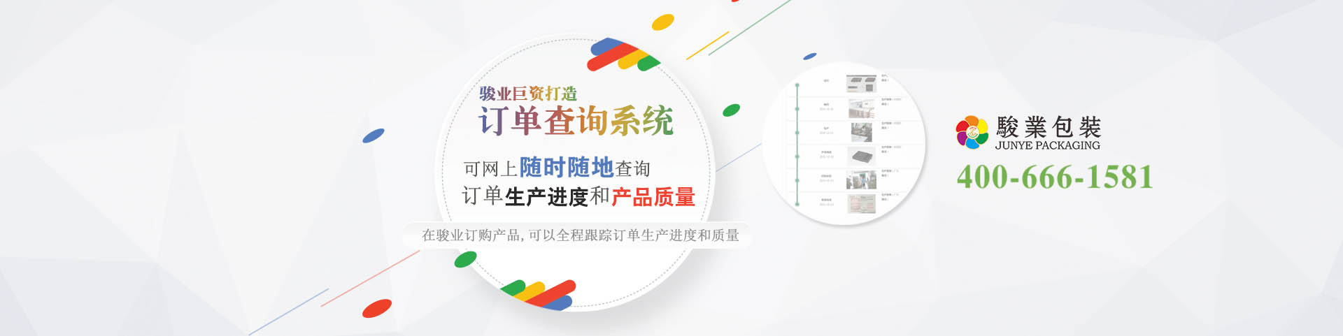 看到蘋果那么大的品牌都在想方設(shè)法的吸粉,而作為一個只是業(yè)內(nèi)比較好的包裝盒廠家,廣州駿業(yè)包裝更加應(yīng)該要搞點事情來吸粉啦!為了方便客戶能隨時隨地查詢到訂單的狀態(tài),包裝廠家駿業(yè)包裝特地研發(fā)出了一個查詢系統(tǒng),客戶可以在網(wǎng)上隨時查看訂單的生產(chǎn)進度和質(zhì)量。其實,客戶特別是國外的客戶在國內(nèi)定制包裝盒時最擔心的就是貨期和產(chǎn)品質(zhì)量問題了,但因為地域原因又不可能跑到工廠去看,而駿業(yè)包裝為了解決客戶的這個后顧之憂做了這個查詢系統(tǒng),讓客戶“看得見”。