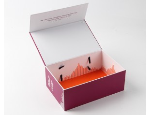 這個(gè)盒子與眾不同的是有拎手,盒子內(nèi)部也用印刷精美的紙裱起來(lái),對(duì)產(chǎn)品來(lái)說(shuō),這款盒子從顏色的選擇到設(shè)計(jì)都非常的高檔時(shí)尚。