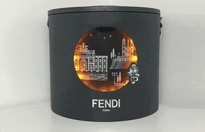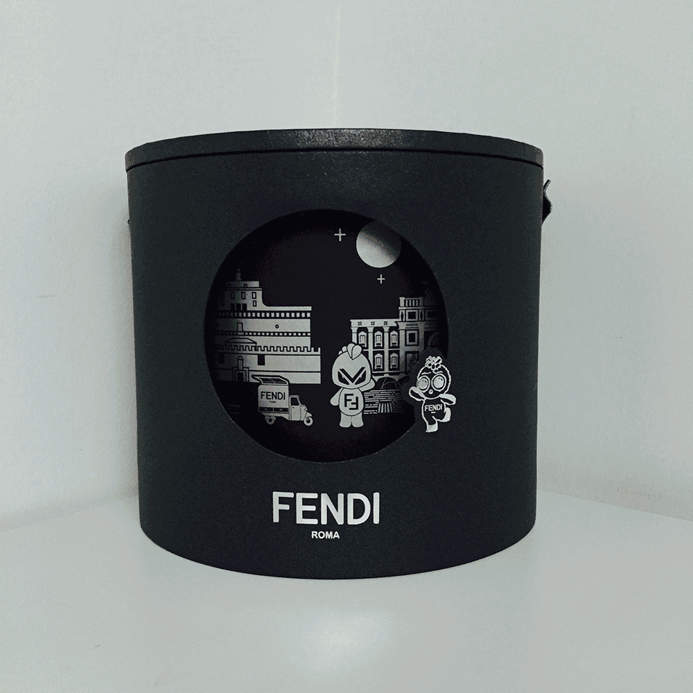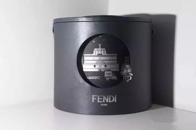 Fendi的月餅盒子大型且別致,是圓柱形,外面站了一個(gè)Fendi小怪獸,寫著“Fendi 羅馬”。
