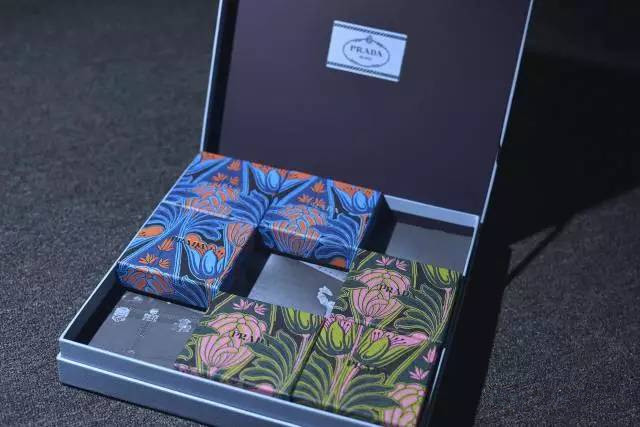 這些品牌絕對(duì)不會(huì)因?yàn)槔锩嫜b的是月餅就掉以輕心。比如Prada,外表雖然走的經(jīng)典風(fēng),但仔細(xì)的客官可以看到上面是有十字紋的,跟我們買錢包絲巾時(shí)候的盒子是一樣的。