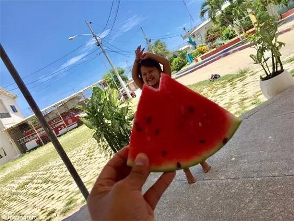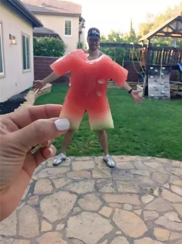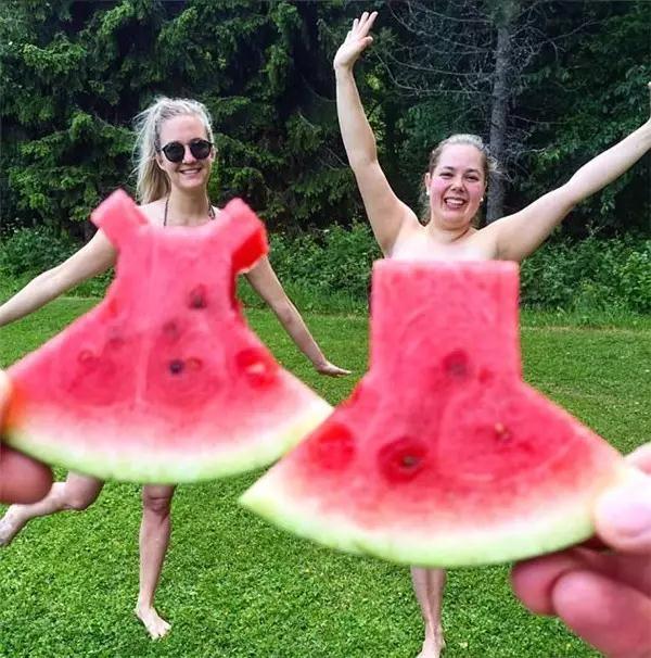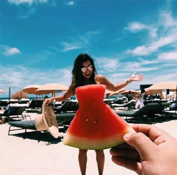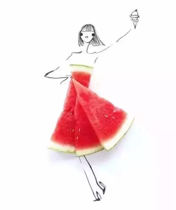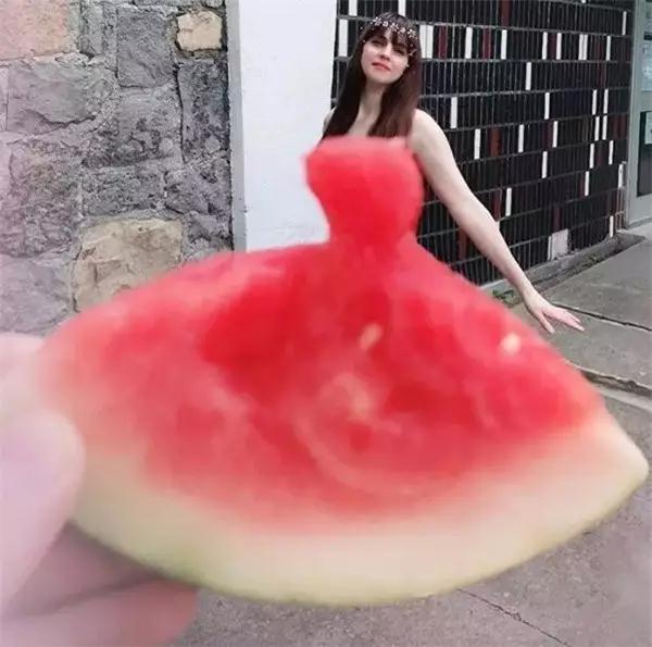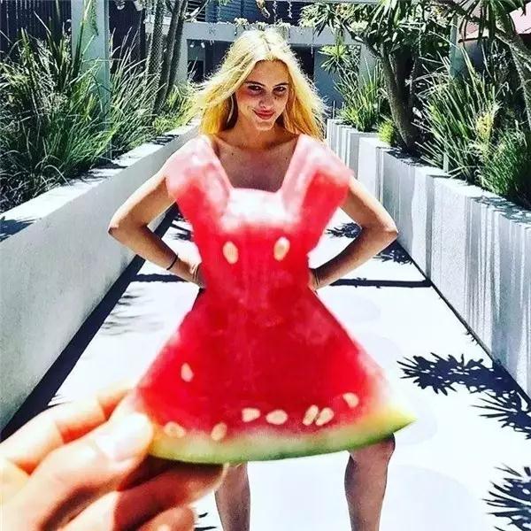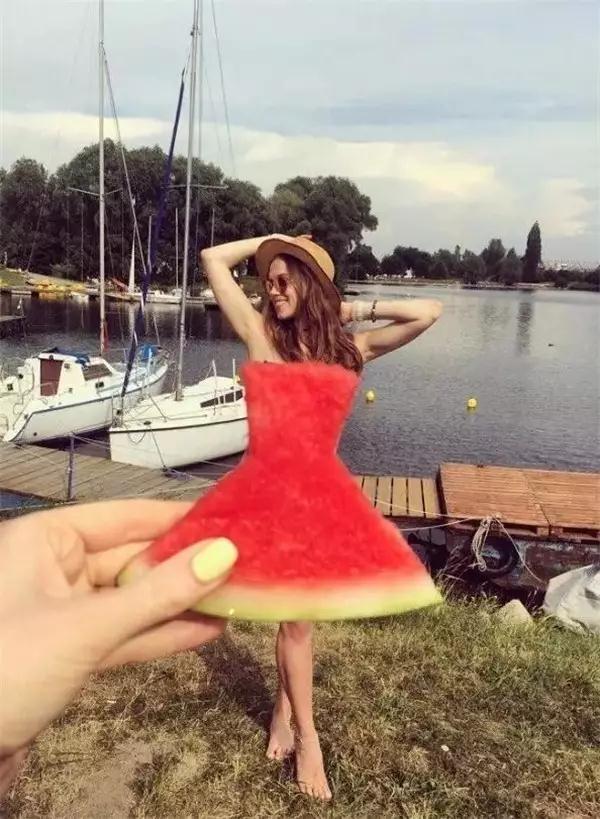 將西瓜切成裙子的形狀,利用巧妙的角度拍攝穿著西瓜裙的照片,看上去涼爽指數(shù)五顆星。嗯,吃個(gè)西瓜還要那么有藝術(shù)感,這才是生活?。∪绻伦约旱漠嫯嫻αΣ粔?,那沒關(guān)系,你可以學(xué)下面的這些玩法,簡單粗暴。