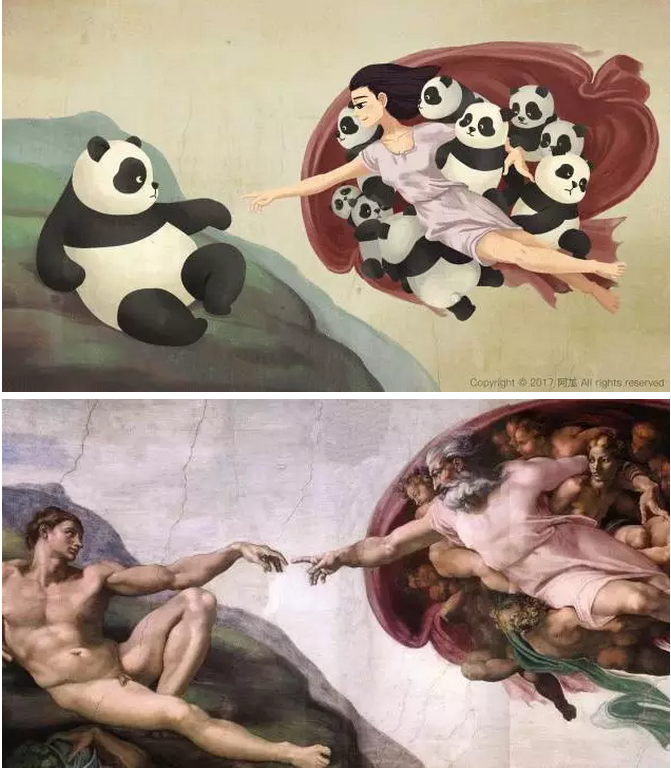 隨著網(wǎng)絡技術的不斷發(fā)展、信息傳播的手段越來越多,以前只能去動物園也不一定看得到的國寶通過個大網(wǎng)絡平臺與大家見面,人們可以通過直播看到國寶的日常生活狀態(tài),也因此被它們呆萌的性格給圈粉。當然,國寶的魅力不僅限于中國境內,那些外國友人也被這些圓滾滾的國寶給迷得神魂顛倒,這不,最近,有個名叫阿尨along的插畫師火了。他的一組大膽、新奇、可愛畫風的插畫,受到了網(wǎng)友瘋傳,畫中的主角是咱們的國寶大熊貓滾滾。在他的插畫中,滾滾有著各種各樣的身份——它時而變作國外名畫中的主角,一會成為中國古代名畫的人物,一會又是知名電影中的形象。讓人不得不感嘆阿尨的腦洞之大。
