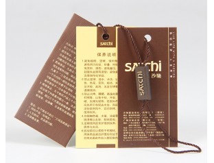 此款服裝吊牌采用400g雙銅紙,四色印刷,過光膠服裝吊牌設(shè)計(jì)整體采用了棕色作為主打色,搭配白色字體,兩個(gè)最柔和的顏色搭配在一起,優(yōu)雅感十足廣州駿業(yè)吊牌廠定制的吊牌,采用優(yōu)良材質(zhì),流程生產(chǎn)機(jī)械化與人工的配合,打造出高質(zhì)量的紙質(zhì)吊牌。