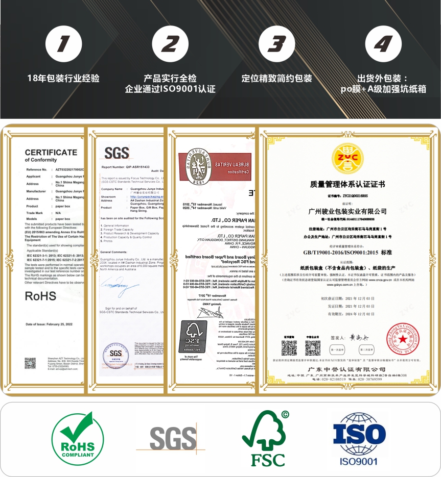 駿業(yè)包裝提供OEM專(zhuān)業(yè)服務(wù),原材料進(jìn)廠時(shí)檢驗(yàn),產(chǎn)前首件檢驗(yàn)確認(rèn),生產(chǎn)中不間斷巡檢,全檢,A級(jí)加強(qiáng)型坑紙箱打包,嚴(yán)格按照ISO:9001質(zhì)量管理體系控制生產(chǎn)流程出貨。另外我們有經(jīng)驗(yàn)豐富的服務(wù)團(tuán)隊(duì)可以根據(jù)您的需求,為您量身制定產(chǎn)品包裝方案。