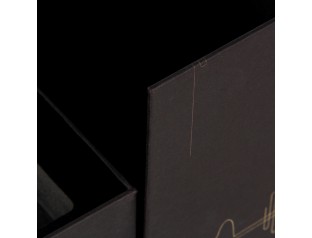 因?yàn)檫@款高端包裝盒所使用的內(nèi)材料是高規(guī)格的灰紙板,為了不讓內(nèi)材料的顏色穿透裱紙,影響到裱紙的顏色,包裝盒廠家建議是盡量不要使用淺色的裱紙,可以使用像圖中的這種黑色或者其他冷色系的裱紙,或者是帶有紋路可以改變顏色穿透的特種紙也是不錯(cuò)的選擇
