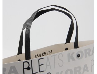 駿業(yè)紙袋廠定制的此款手提紙袋,采用250g單銅紙,單色印刷,過啞膠,提手處用PU皮紙袋廠設計的服裝紙袋設計以白色為主打色,點綴些許黑色,經(jīng)典黑白兩色搭配,簡約清新。想定制手提紙袋,歡迎致電廣州駿業(yè)紙袋廠,專業(yè)16年包裝印刷行業(yè),免費設計,量身定制。