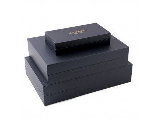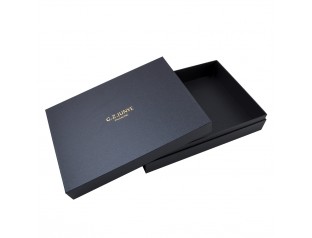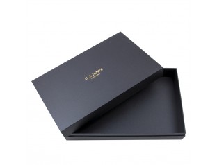 此款皮具包裝盒,表面那磨砂質(zhì)感的碳黑平面面紙,就知道此包裝是專門為英國產(chǎn)品包裝的。皮具包裝盒,堅(jiān)硬厚實(shí),表面平滑磨砂質(zhì)感,光澤靚麗,產(chǎn)品價(jià)值檔次瞬間大升。